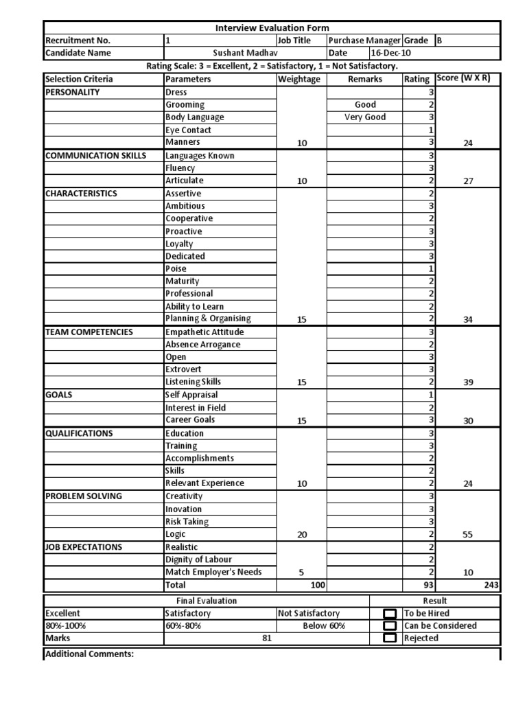 Here is how this document can promote objectivity within the entirety of the interview procedures the usage of an interview evaluation form can help the human resource department separate the candidates according to their interview performance.